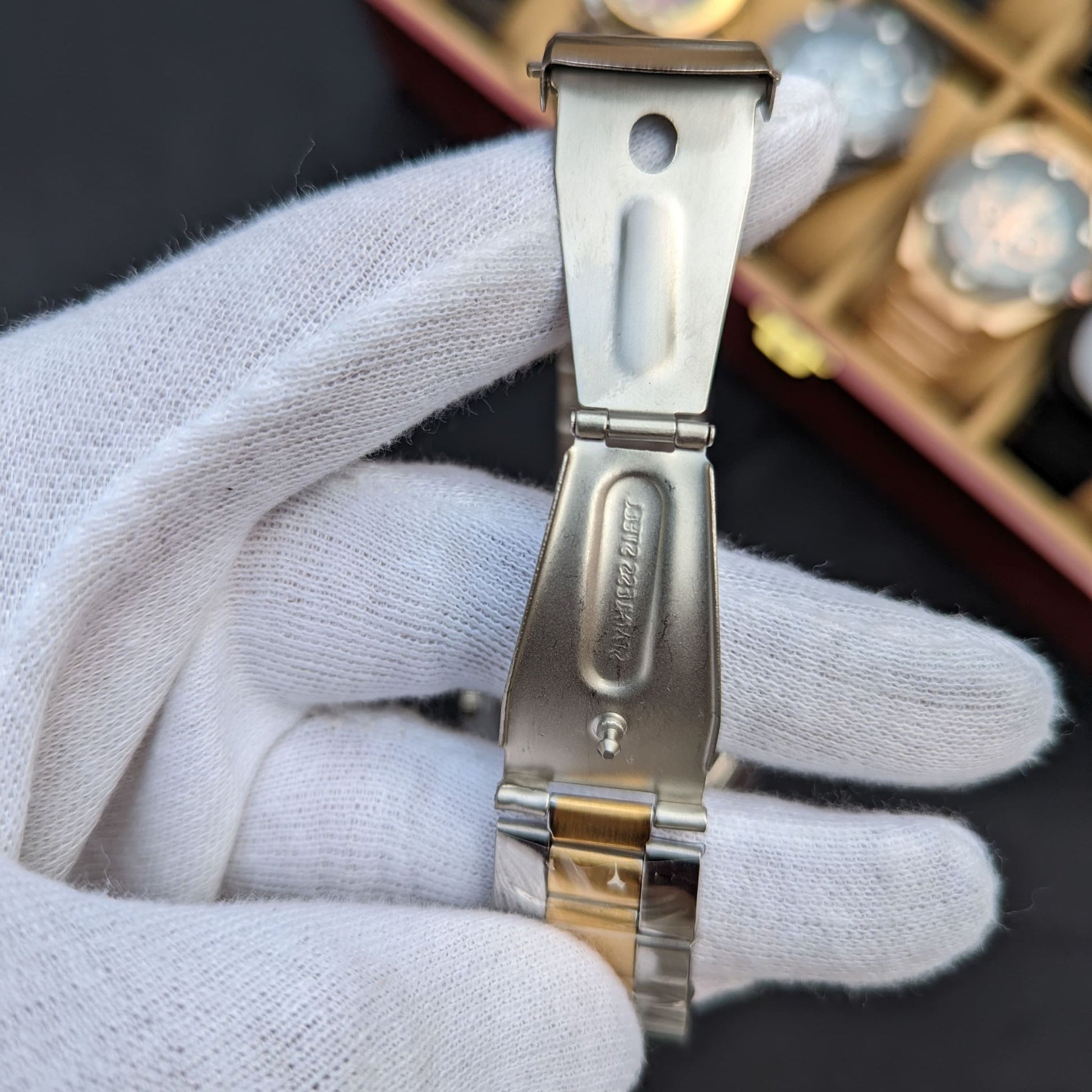 A bold two-tone design with a smooth-rotating dial makes this watch stand out, while its stainless steel build ensures lasting durability. Powered by reliable quartz movement, it keeps you on track with clear date and time display and a secure push-button master lock.
